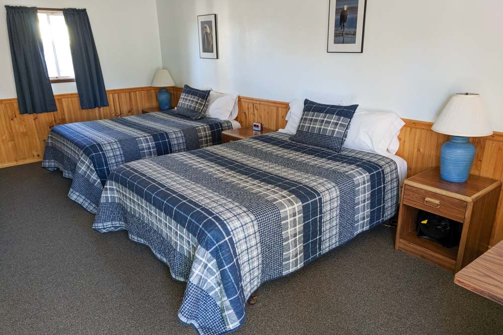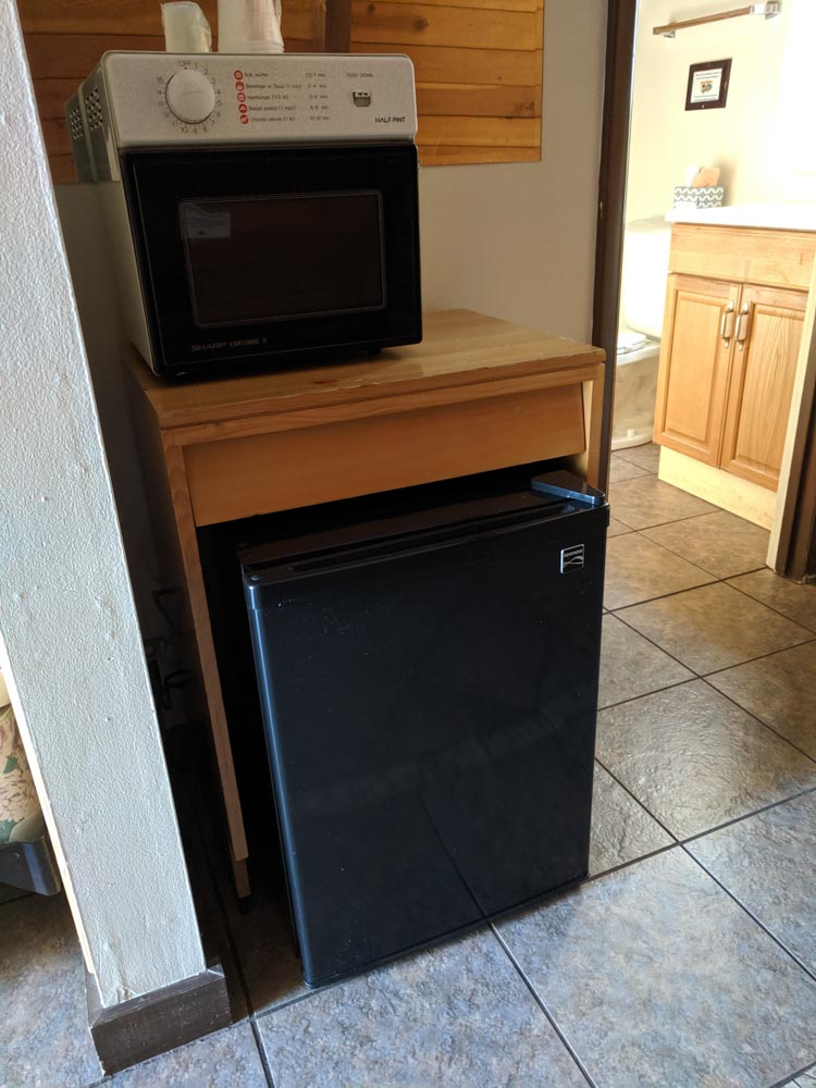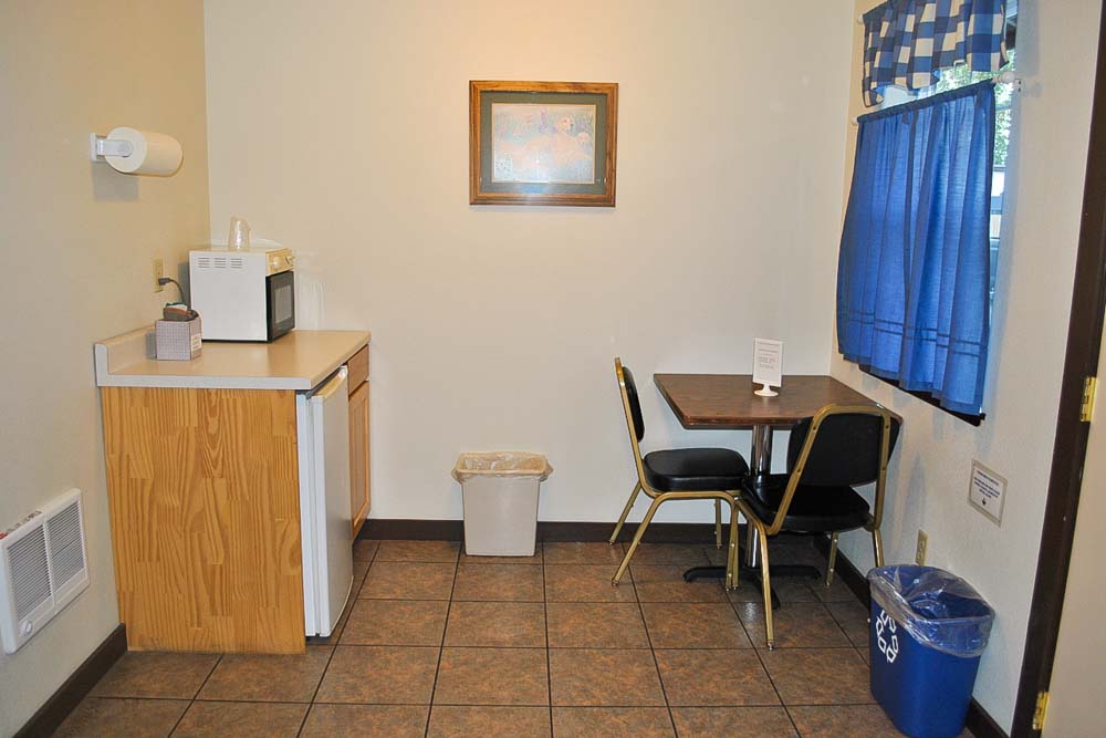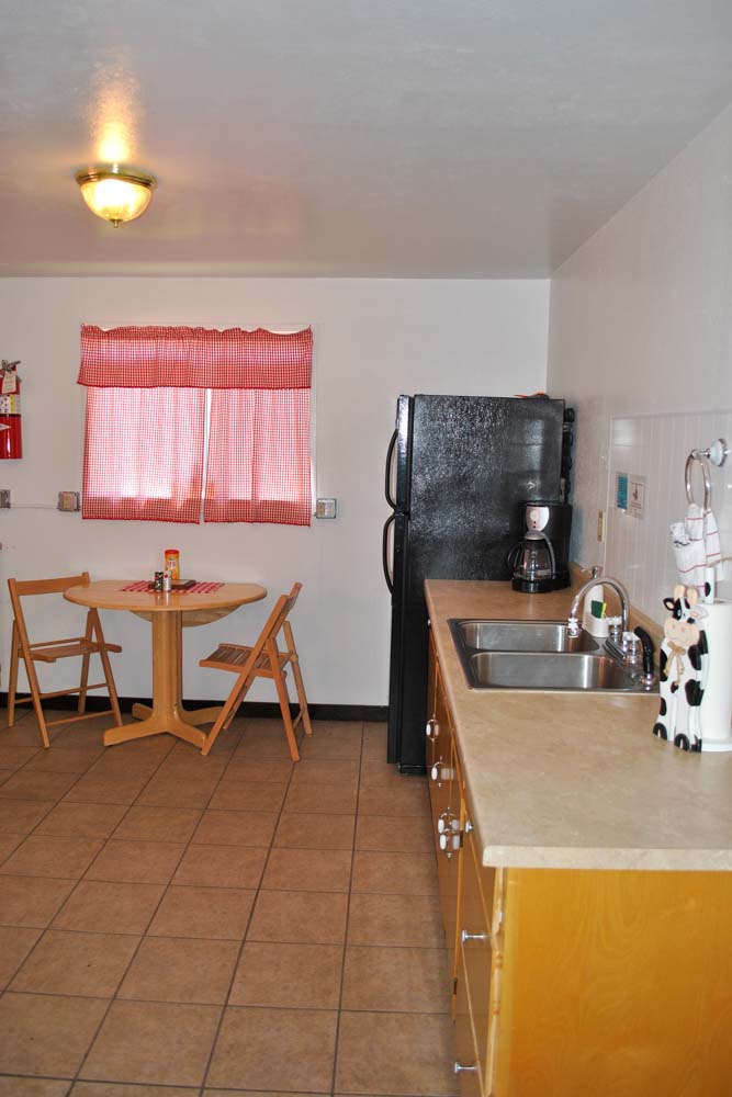 Cooking is not allowed in the rooms, suites or cabins EXCEPT by microwave. We do have a nice gas bbq grill with an additional burner for a pot or pan. The grill is located on the cooking patio and is available for guest use until 10:00 p.m. Cooking odors are difficult to remove. Guests are responsible for a $150/night cleaning fee if management determines they have cooked in the room. An outdoor cooking area is available on the patio next to the office. There is a gas grill with an additional “stove-top” burner available, free of charge for guest use.