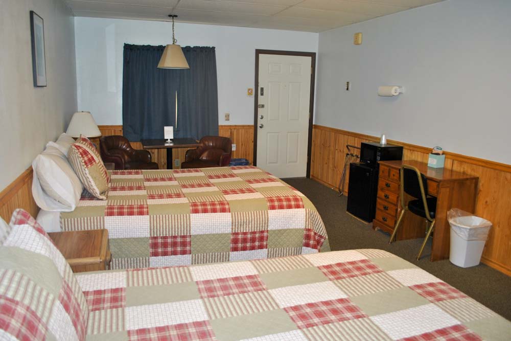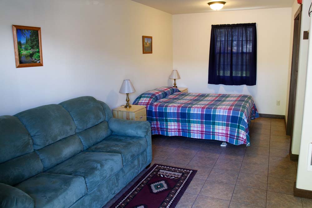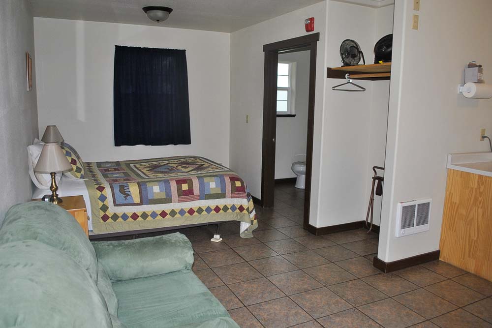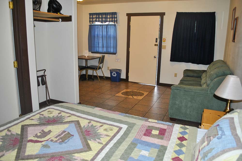 There are four suites with dining areas. Three suites can accommodate up to two people, and the fourth accommodates up to four people. All have queen beds, sofas, table, chairs, microwave and refrigerator. All rooms are non-smoking.
