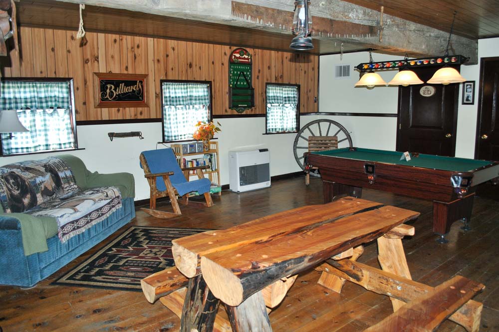 The Wagon House is about 1000 sq. ft. and includes two bedrooms, fully equipped kitchen, living room with picnic table, pool table couch. Guests enjoy a private bar-b-que grill and private parking. It is non-smoking with no minimum night stay.